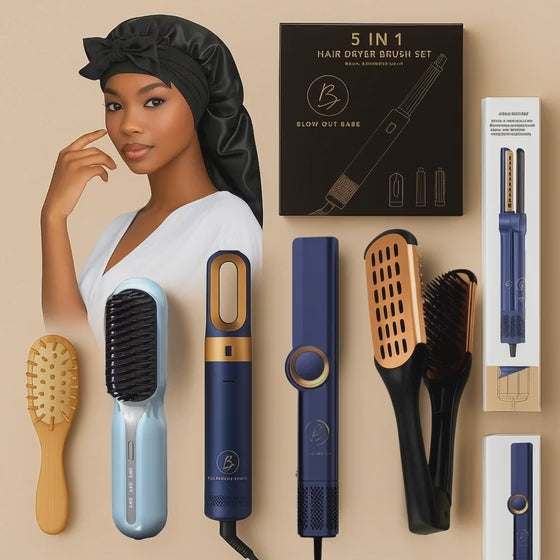 Say goodbye to heat damage and say hello to healthy, beautiful hair with Blow Out Babe. Our 2-in-1 straightener, 5-in-1 air dryer, and travel brush will allow you to achieve salon results whenever and wherever you want.